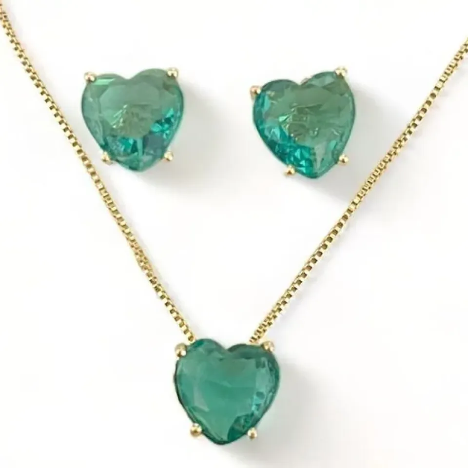 CONJUNTO CORAÇÃO PEDRA TURMALINA ZIRCONIA ...