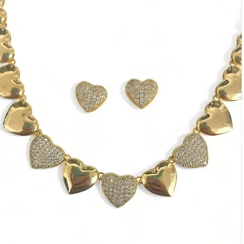 CONJUNTO CORAÇÃO PEDRA TURMALINA ZIRCONIA ...
