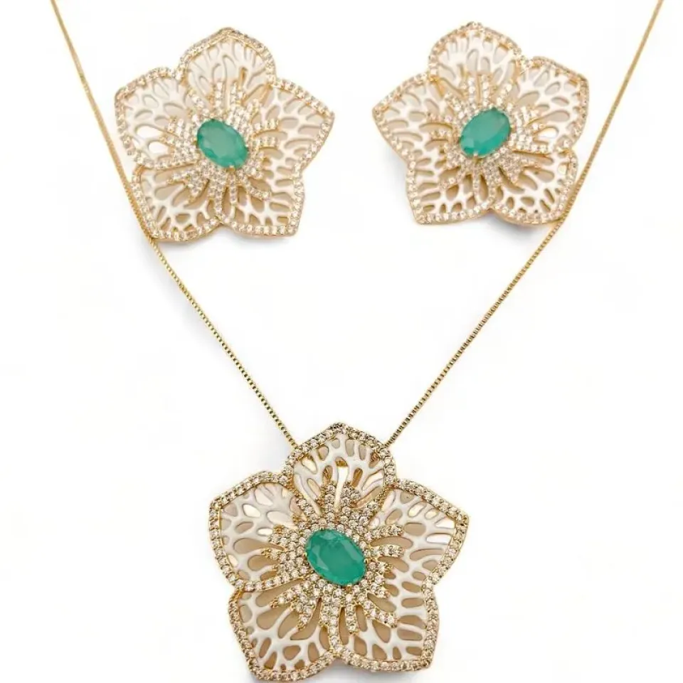 CONJUNTO CORAÇÃO PEDRA TURMALINA ZIRCONIA ...