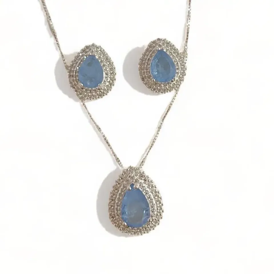 CONJUNTO PEDRA QUARTZO ROSA FLOR ZIRCONIA ...