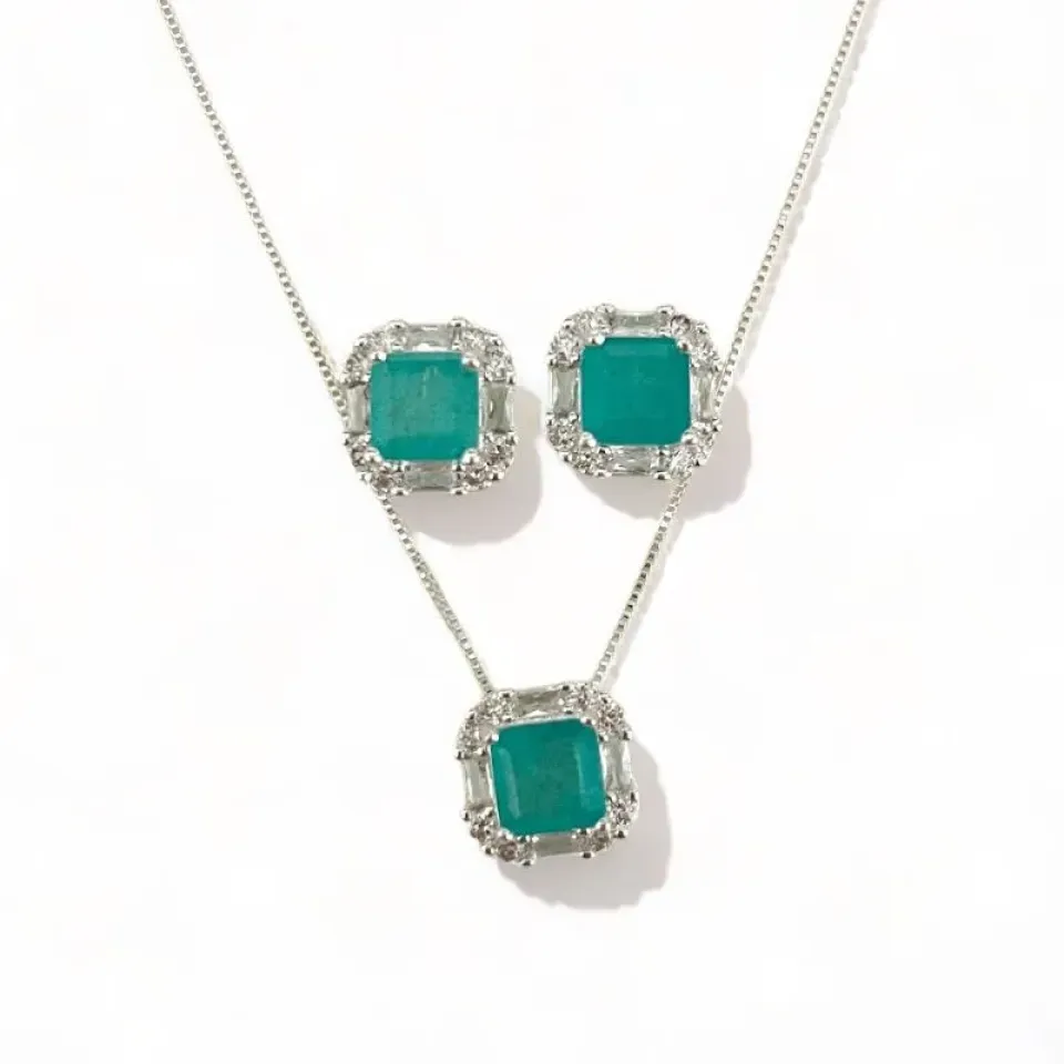 CONJUNTO PEDRA QUARTZO ROSA FLOR ZIRCONIA ...